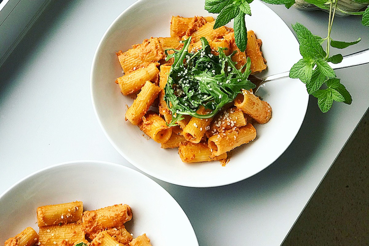 Easy pasta dishes are my go-to when I’m feeling slightly lazy or am out of fresh produce. They’re super easy to throw together and there are endless options for keeping things new and exciting. I love experimenting with different pasta types, from wholewheat and spelt to red and yellow lentil, brown rice and even oat (the only one I haven’t warmed to is pea-based pasta – just too dominant of a flavour in my opinion). And, of course, there is so much you can do with sauces, spices, herbs, etc.